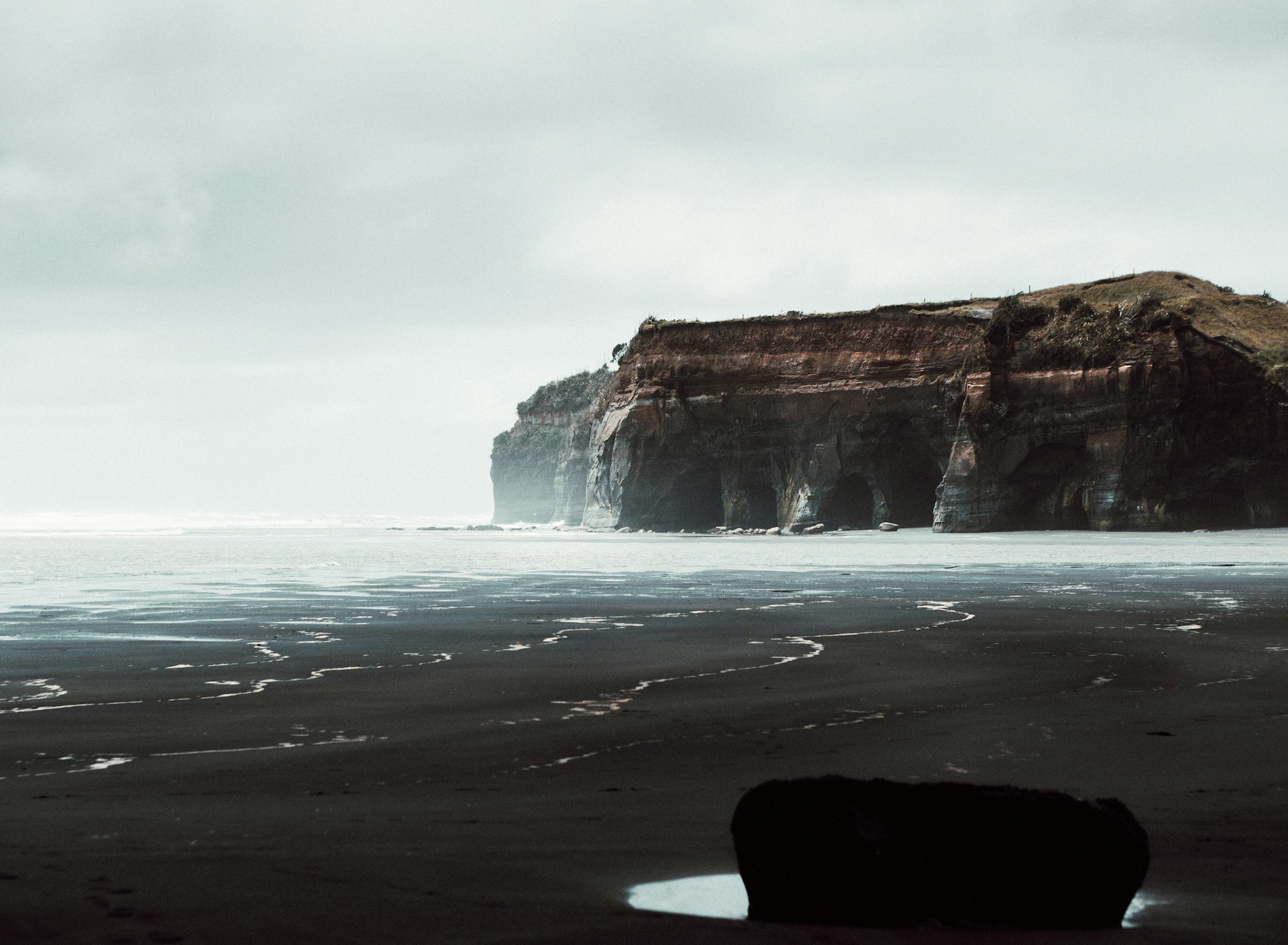 黒い砂のビーチと火山の地形がつくる静かな海辺